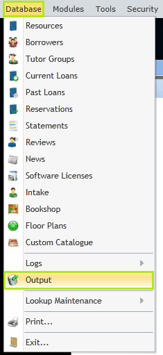 ·To access the Output Table, click Database / Output from the menu at the top within Management.