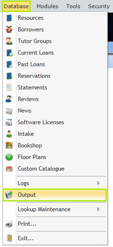 ·To access the Output Table, click Database / Output from the menu at the top within Management.