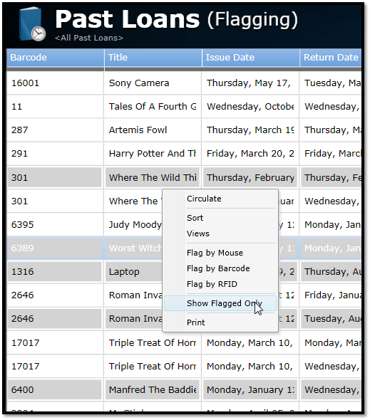 To delete more than one past loan, use the flagging feature. See the section on Flagging for more information.