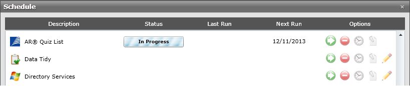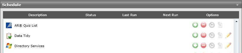 ·A list of tasks available in the system will display. To Schedule the AR Quiz List task, locate it in the list and click the clock icon