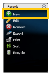 ·Click on the New icon from the Records toolbox on the right side of the screen.