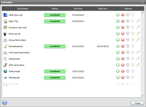 The scheduling functionality has been completely re-designed and improved. Because it is not possible to accurately covert the jobs from a previous system, all tasks apart from housekeeping will need re-configuring. This can now be accessed from a permanent link on the right of the Management page labelled "Scheduler".