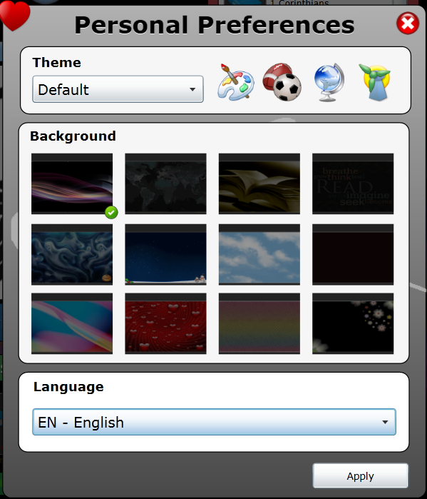 A number of themes have been added which will alter the icon set and background colours of Management.