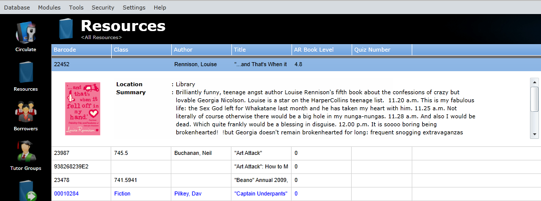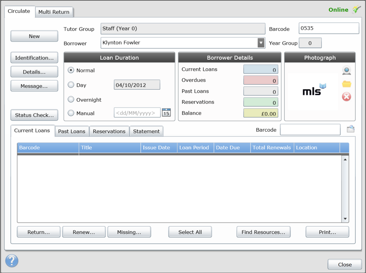 A second barcode box has been added to the Circulate tab, and also appears on the Multi Return tab. This allows you to type in a resource barcode number and it will automatically issue / return it (Circulate tab), or return the item (Multi Return tab). This stops you having to search for the resource in ‘Find Resources’ first for items where you already know the barcode.