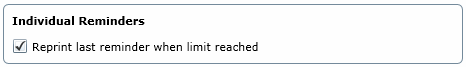 ·Check or un-check the tick box for Reprint last reminder when limit reached. If a borrower is at their maximum reminder number then this check box defines whether or not the last reminder is re-generated for the user.