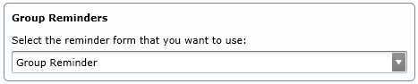 ·Select from the drop down menu under Group Reminders to define which reminder is used when generated on the scheduler. Unlike individual reminders that are sequential, group reminders have the same reminder generated each time. Select the reminder to generate from the drop down menu.