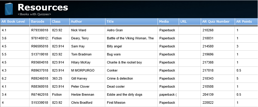 ·Any books that contain an AR quiz will show in the grid. An example of this is below: