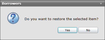·A prompt will display requesting confirmation of this action. Click Yes to proceed and restore the record from the recycle bin.