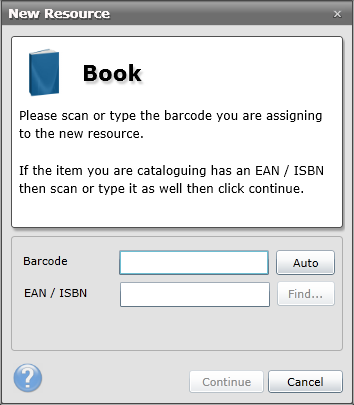 The system can automatically assign barcodes to resources when the Auto button is invoked from the new resource window. This feature is not always used and greatly depends on how you allocate your barcodes. The majority of users print barcodes ahead of time before cataloguing (or receive barcode labels FREE from MLS) and scan the barcode number instead of using the auto function. However, there may be some situations where you would like to have one automatically generated. The automatic barcode options define the rules of how the system generates this automatic number.