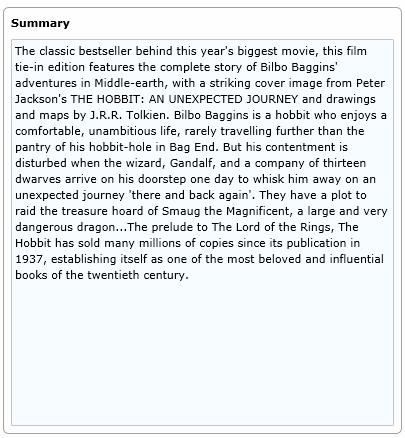 The summary of a book can be entered into the appropriate box. If a summary has been entered automatically (from Discovery Online) then it can be altered from here too.