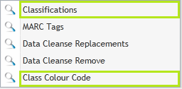 ·A sub-menu will open as shown above. select either Classification or Class Colour Code from the list to open the respective table.