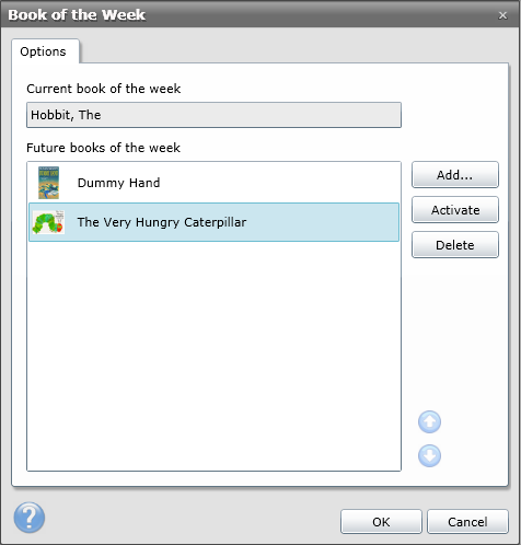 ·To re-arrange the order so that The Very Hungry Caterpillar becomes the next Book of the Week, click the item so it is highlighted.