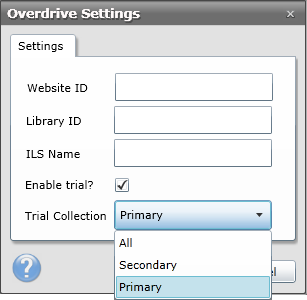 ·Tick the box labelled Enable trial. Leave Website ID, Library IB and ILS Name empty. These configuration settings are only required if the full version is being used.
