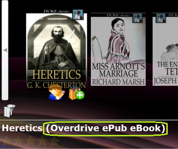 Firstly, to find the content, you must be able to recognise the content that is actually from Overdrive. All the content which is from the Overdrive platform will have an addition to the title, to signify that this is where it is from: