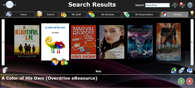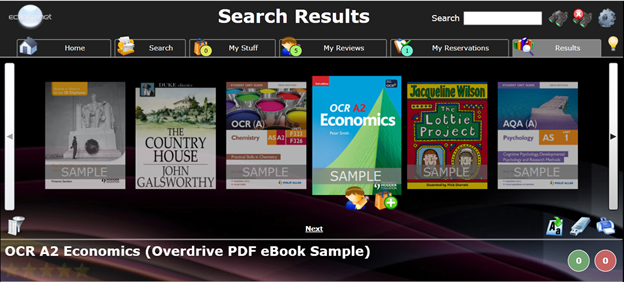 ·When clicked, you will be presented with all content in your catalogue that is catalogued as an eBook, including Overdrive content.