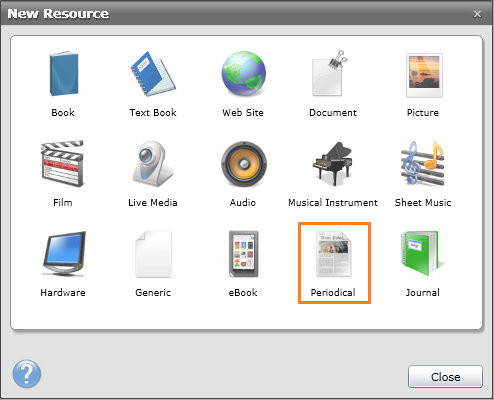 ·In Management, click Add and select Periodical from the cataloguing screen.