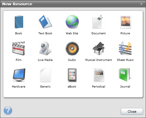 The instructions below explain how to add items to the library catalogue in full. In this example, a resource of type book is being catalogued.