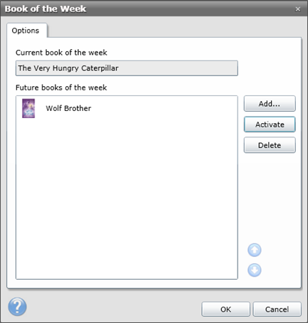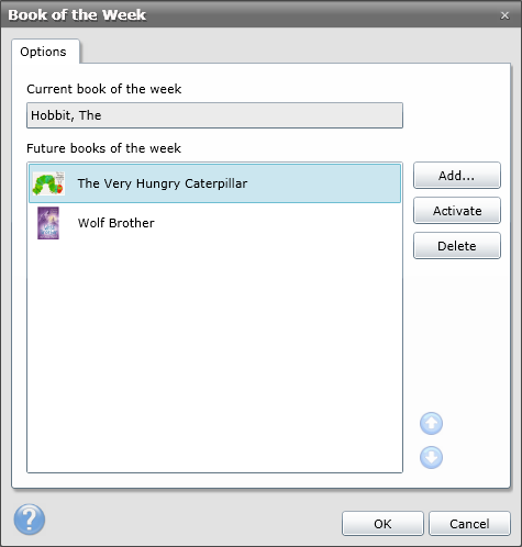 The steps below explain how to force a particular book onto Book of the Week. In our library, The Very Hungry Caterpillar has been very popular recently so this book is being made the new book of the week immediately.