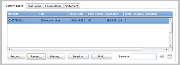 In version 15.2, borrowers can now renew their own loans from their account when logged in, should this setting be enabled. You can find information about this setting in the topic Changing Restriction Settings.