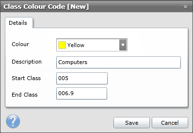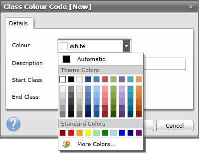 ·Click Save to confirm the class colour code.
