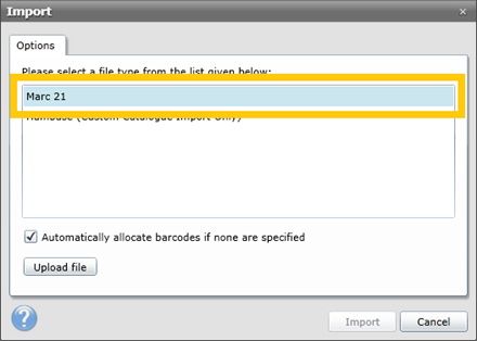 ·Select Marc 21 from the list of file types