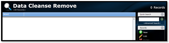 The Data Cleanse Remove table will appear on-screen.