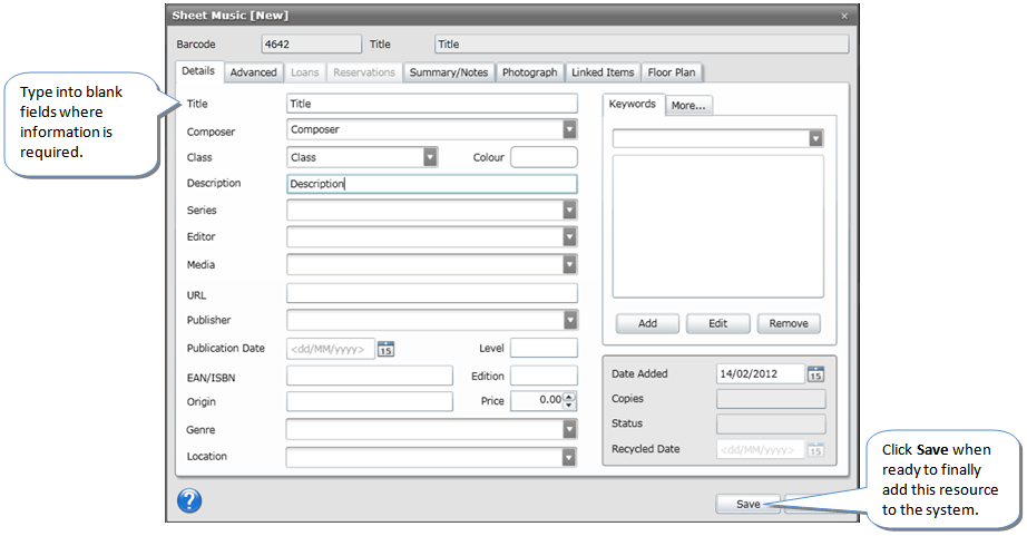 Follow these instructions on how to enter the resource barcode. Please note that with items other than Books the user is not required to enter an ISBN.