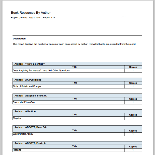 ·After a short delay, the PDF Viewer will appear on-screen. Shown below is the Resources By Author report, as an example.