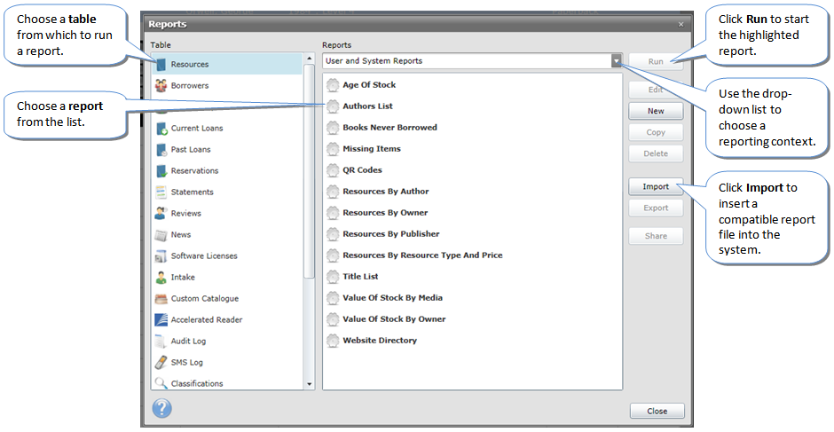 The instructions in this topic explain how to view and run reports against your library data. You can also view statistics using the Dashboard including reports across the community.