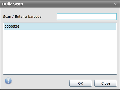 ·In the BulkScan box that opens, scan or type the barcode accession number of the resource. As each resource is scanned, the number that was recognised will appear on-screen.