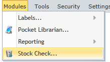 ·To create a new Stock Check, click Modules / Stock Check... from the top menu.