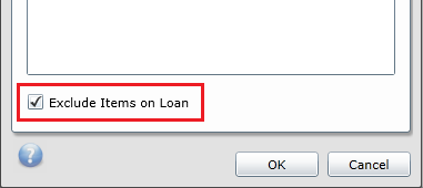 ·After selecting the resources that should be stock checked, tick or un-tick the Exclude Items on Loan check box depending on whether or not they should be included in the stock check.
