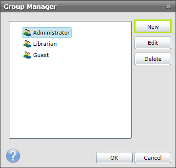 By default there are 3 security groups available, these are; Administrator, Librarian and Guest. Should you wish to append to this list, you can create a new security group using Group Manager. The steps in this topic explain how to do this.
