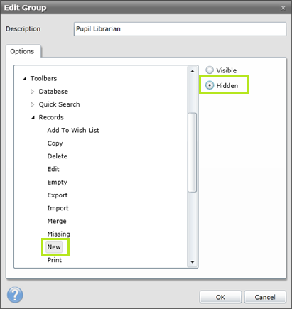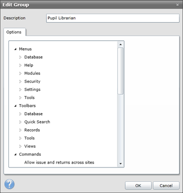 ·In the Description field, enter a name to assign to the new security group. In this example, Pupil Librarian has been entered because we are creating a new group with a level of access suitable for a pupil librarian
