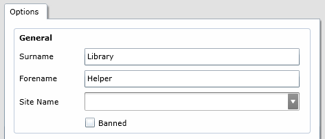 ·The Edit User box will open. Enter the Surname and Forename into the respective fields. If you are creating a "Library Helper" account like in this example, enter "Library Helper" into both boxes or something similar.