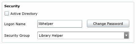 ·Under the Security heading, enter a Logon Name and Security Group. Security groups are configured in the topic Group Manager.