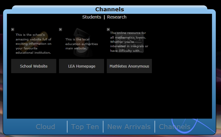 The Channels features allows you to share links to relevant websites. These links can then be categorised and allocated an icon.