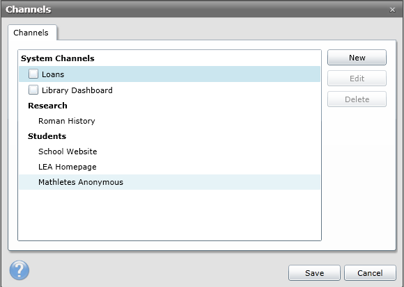 In here new channels can be added and there is the option to re-enable the Loans option or add the Dashboard as options within Channels.
