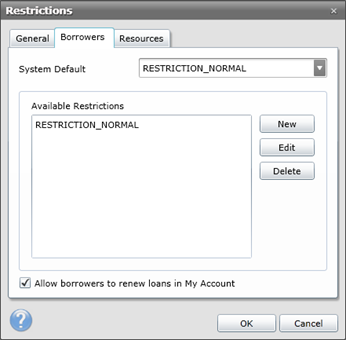 ·In Management, click Settings / Restrictions... then click on the Borrowers tab