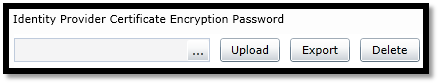 Identity Provider Certificate Encryption Password - Use the upload controls to upload the Idp encryption certificate (*.CER).