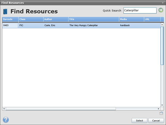 ·Click on a title to highlight it and then click Select at the bottom right.