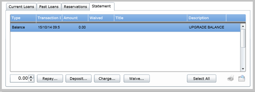 From the Statement tab in Circulate, you can log repayments for fines and create adjustments to a Borrower's balance.