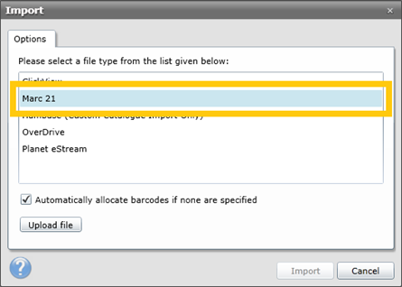 The remaining parts of this topic explain how to import a MARC file into the Catalogue.