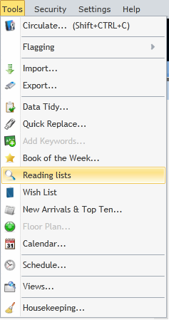To access the Reading Lists interface, select Tools / Reading Lists by clicking the menu at the top of management.