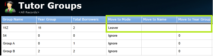 ·From the Tutor Groups table, check that all groups that are being moved to new group are configured correctly. In this example, the group labelled 11Z is being moved to Leavers and all others are being ignored. This can be verified by looking at the grid like in the example below: