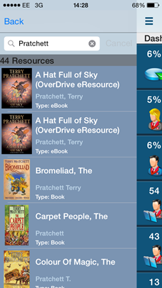 ·Use your finger to scroll through the list of results and tap a result to find out more. There may be more than one 'type' of resource shown in the results. This will be indicated by the Type field, which lets you know whether the item is a Book, Website link, e-Resource, Film and any other type that is catalogued in the library.