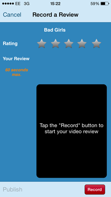 ·If you selected Video Review, a screen will open where you can start recording a video of the resource. Tap a star to give the resource a rating then click Record to start recording your video.