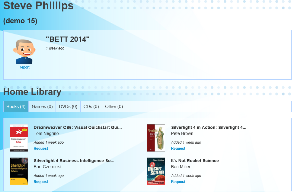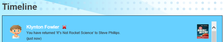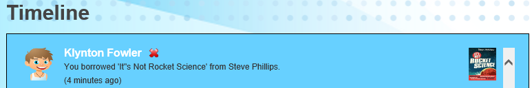 The borrower is now borrowing the friends Home Library item and their Timeline will update to reflect this.
