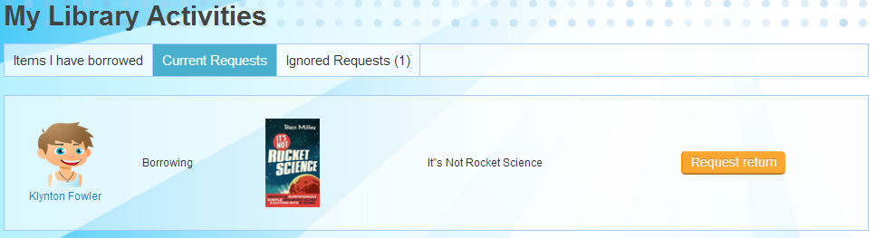 When the friend requires the item back they can go to My Home Library and click on the Current Requests tab. It will then show a Request Return button, clicking this will send a request for the item to be returned.