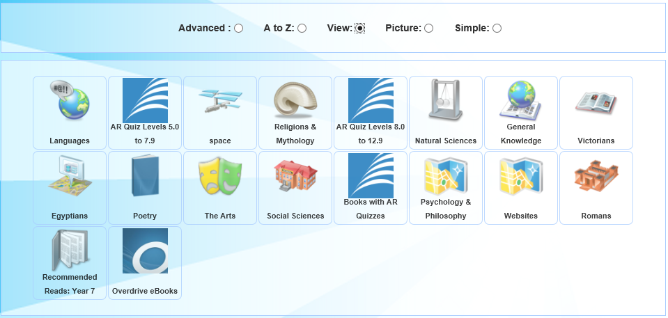 Click Views to search the catalogue based on parameters set by the Librarian in various Page Views.